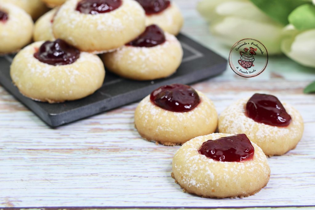The Ovis Mollis cookies with cherry jam are special shortbreads, crumbly like a cloud thanks to the use of hard-boiled yolks in the dough.