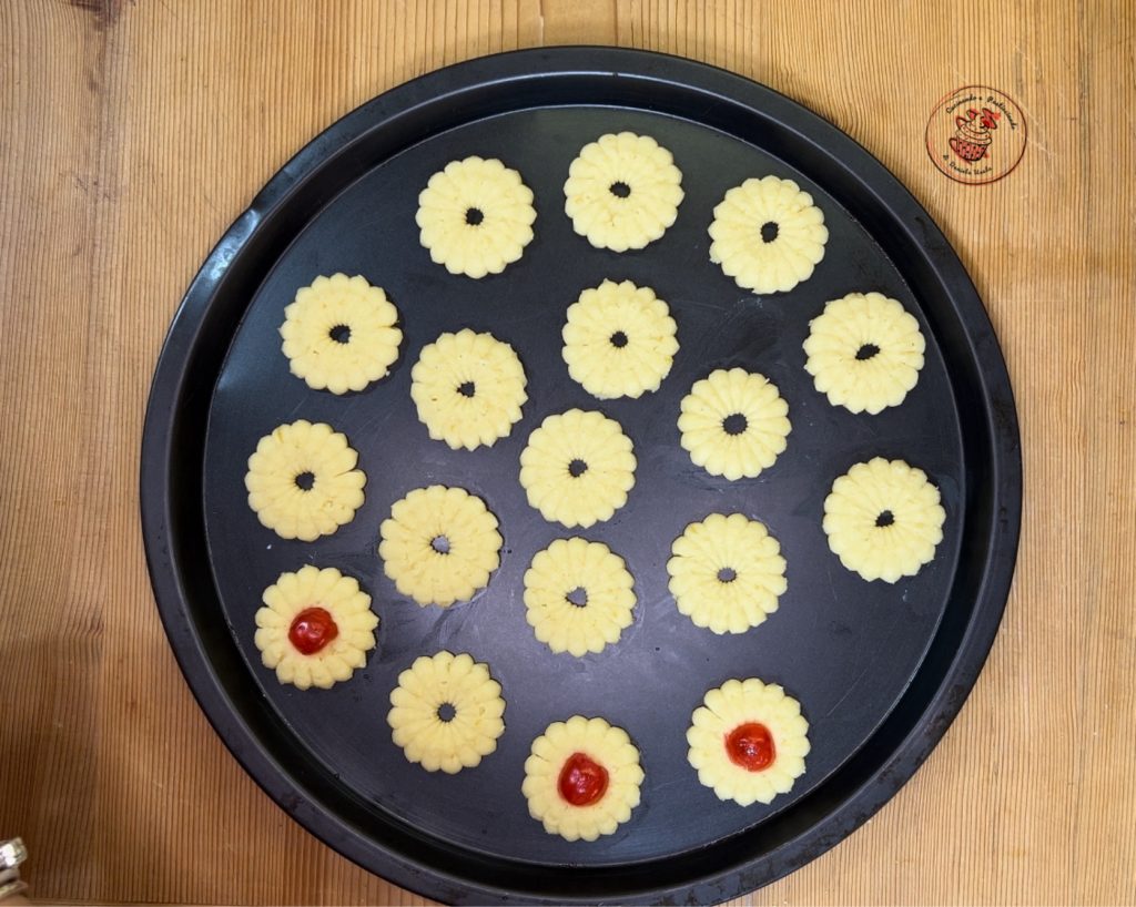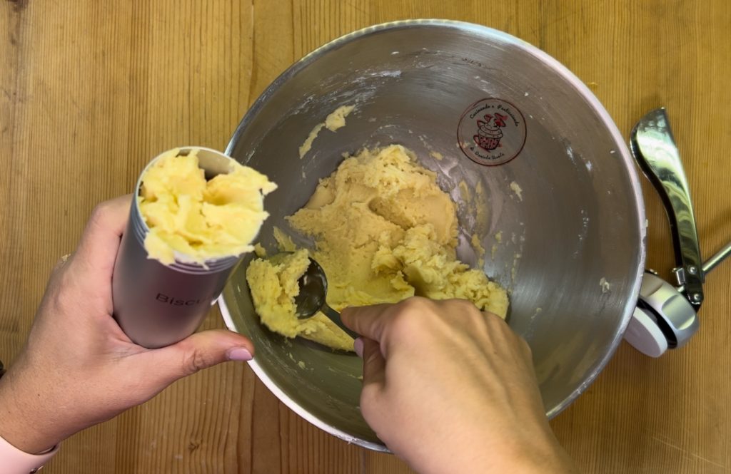Form the cookies by simply pressing the handle. Continue this process until the dough is finished. Between fillings, you can also change shapes.