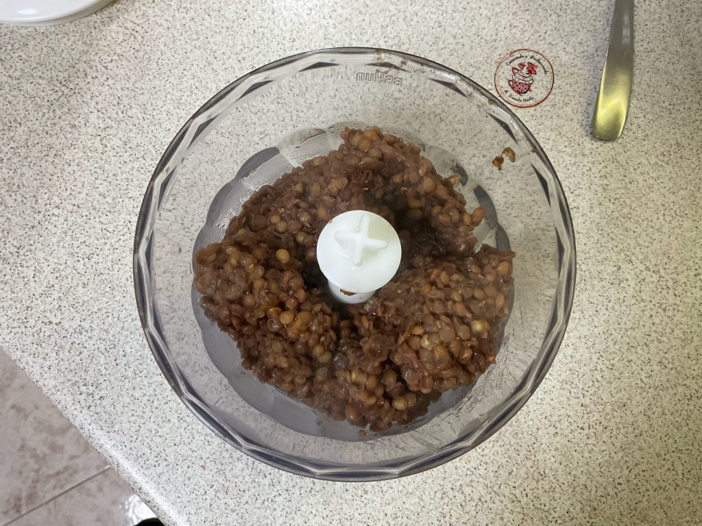• If you are using dried lentils, boil them in water for about 30 minutes and then pour them into the mixer. If you are using canned lentils, drain them and pour them into the mixer.