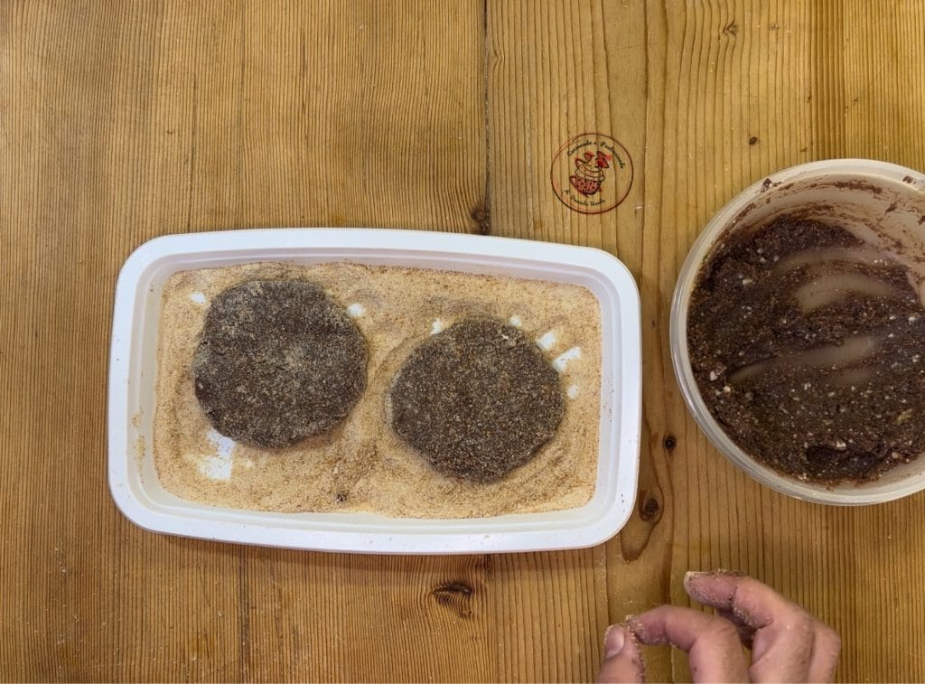 • Mix well and form the burgers that you will coat in breadcrumbs.