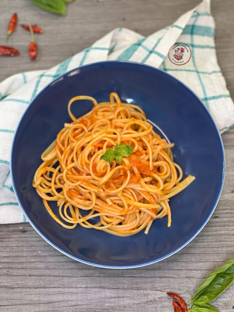 Today I prepared Linguine with Basil Sauce made a few days ago, with the last cherry tomatoes from the garden. And since we love basil at home, I used a lot of it. Very tasty. Linguine with tomato and basil sauce is a classic summer dish, but it can be prepared in any season. In fact, I made a small supply in the freezer. I chose linguine, but you can use any pasta shape you like.