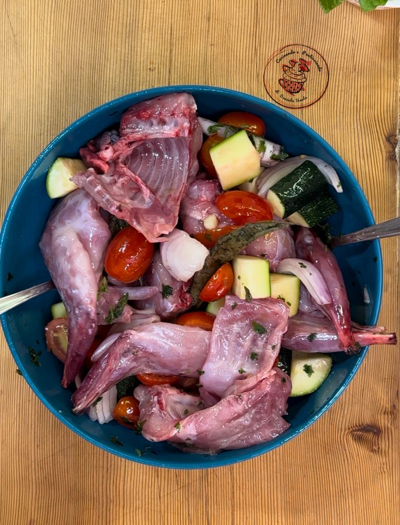 Today I prepared the marinated rabbit with vegetables. A different way to eat it other than ‘alla cacciatora’. We like it a lot. It’s very easy to prepare and can be varied with the vegetables you like the most. For cooking, I chose the air fryer but oven cooking is also fine.