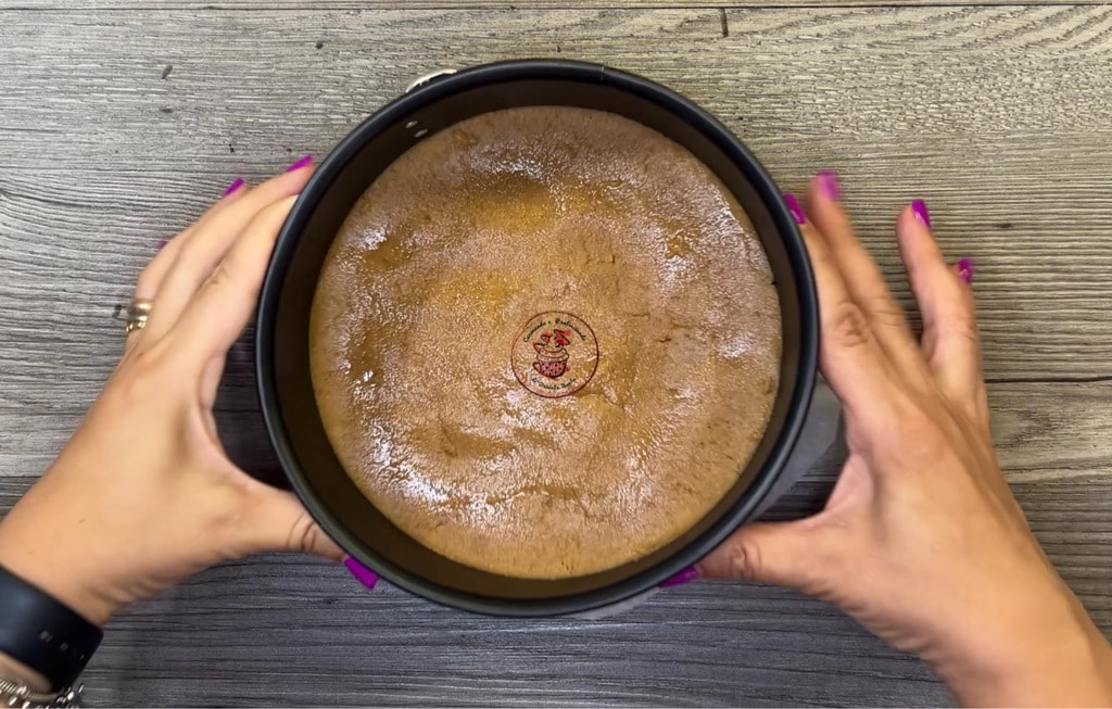 Transfer the biscuits to the cake pan and form the base of our cheesecake. Let it rest in the fridge while we prepare the cream.