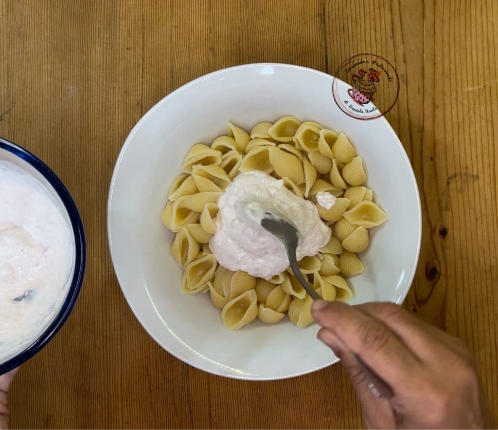 • Drain the pasta al dente, place it in a bowl and dress it with the prepared sauce.