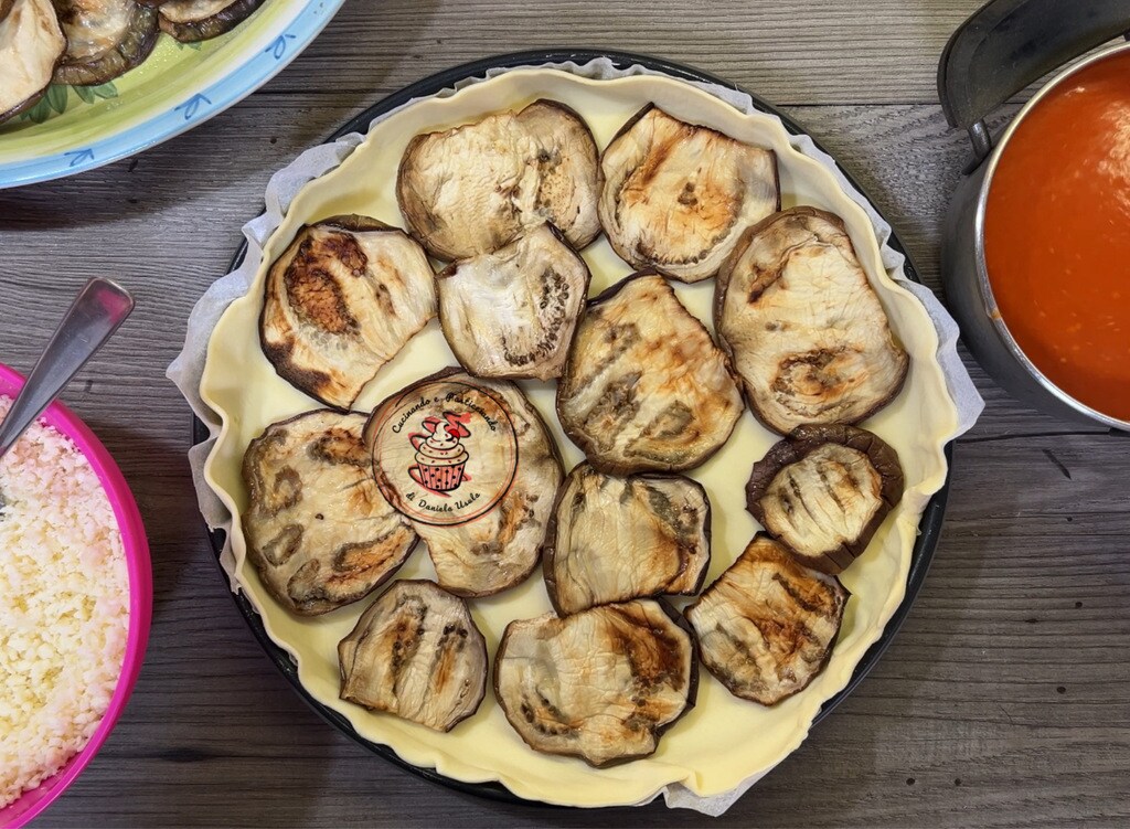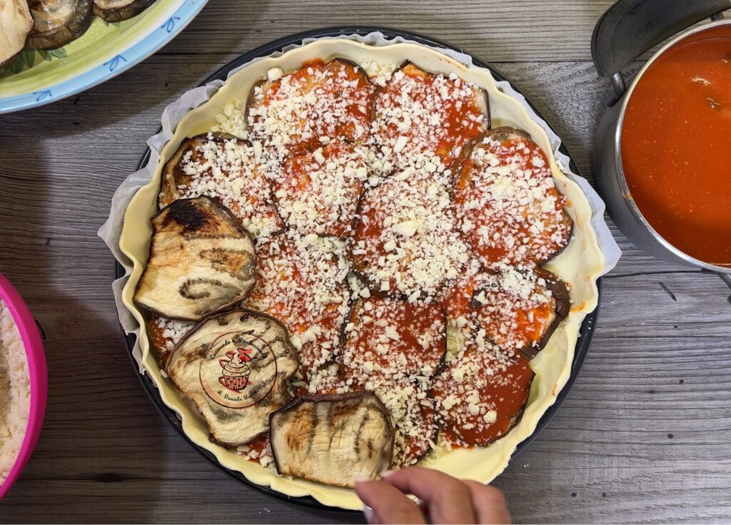 Are you craving parmigiana but looking for a lighter and original version? This savory pie with eggplant parmigiana is the answer! The eggplants are cooked in an air fryer, so without frying, and enclosed in a crispy puff pastry shell. A tasty idea perfect as a main dish, for a summer aperitif, or to bring to the table for family lunches. All the taste of parmigiana in a creative and lighter version!