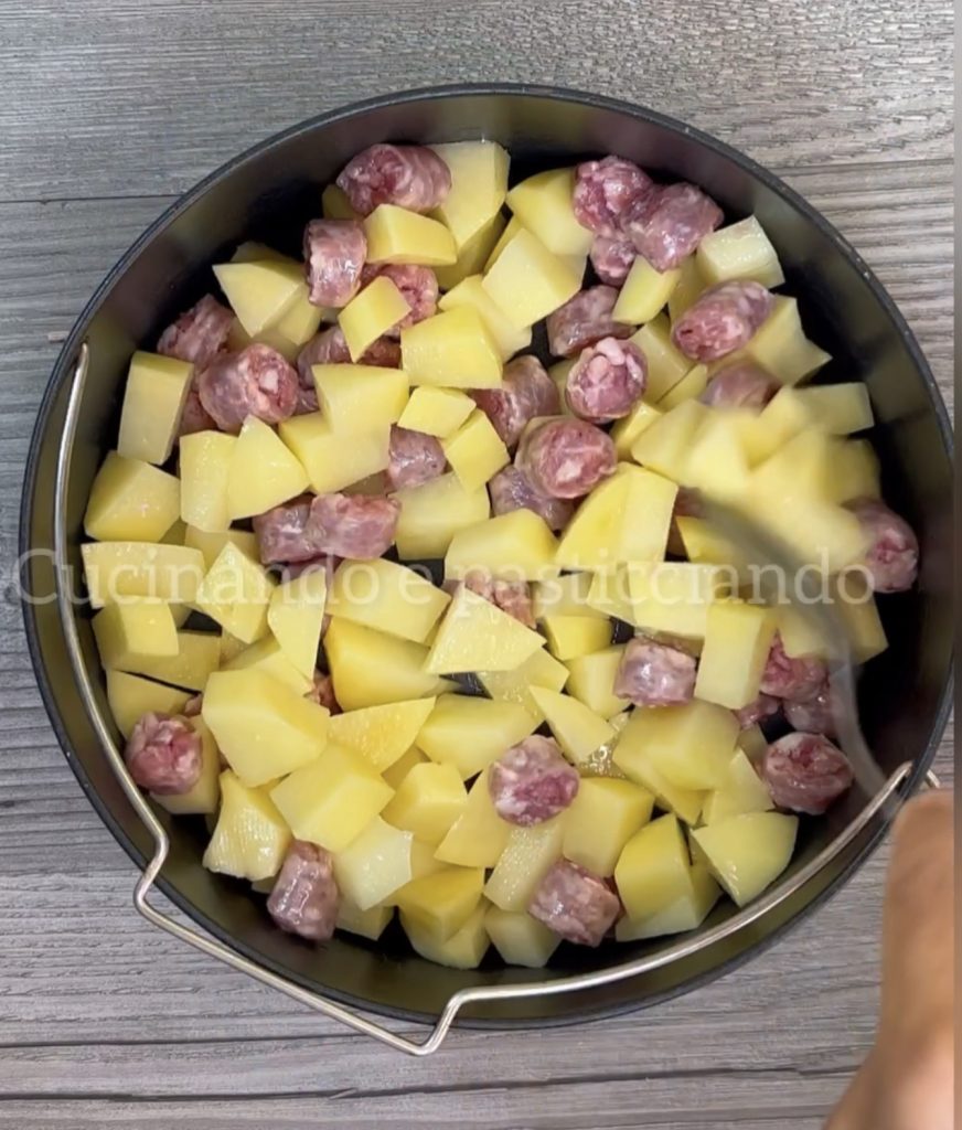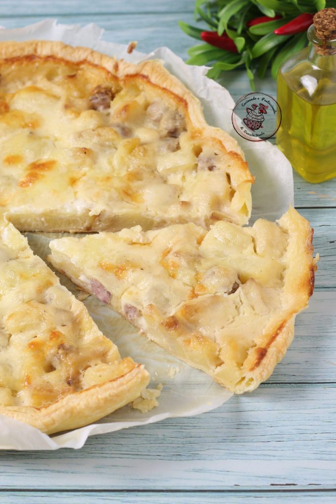 I love savory pies, today I made it with potatoes and sausage. What can I say, it was delicious, and my guests appreciated it. It was also very good the next day. The preparation is very simple and does not take much time. For convenience, I cooked the potatoes with the sausage in the air fryer. But you can also bake them in the oven or cook them in a pan. Whatever you prefer.