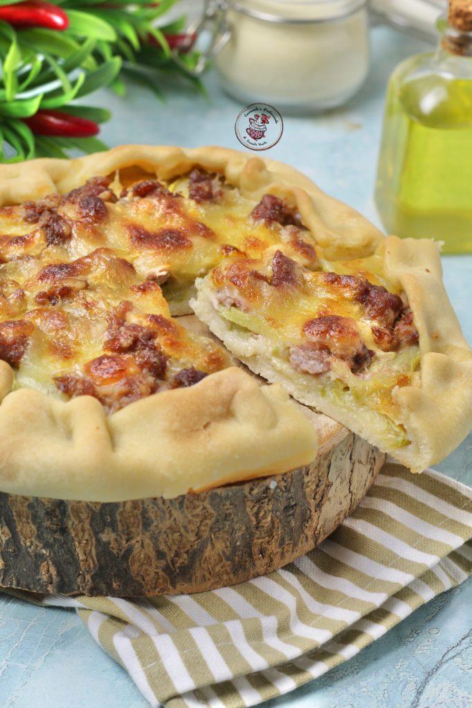 After the great success of the Delicious Eggplant Savory Pie, today I replicated with the Savory Zucchini and Sausage Pie, so good, always a top pairing!! Zucchini and sausage go perfectly together, just like in the Pasta with Zucchini and Sausage. For the base, I used my tried and true recipe for the Quick and Easy Savory Pie Crust without Yeast, which I always make at home whenever I crave savory pie but don’t have puff pastry.