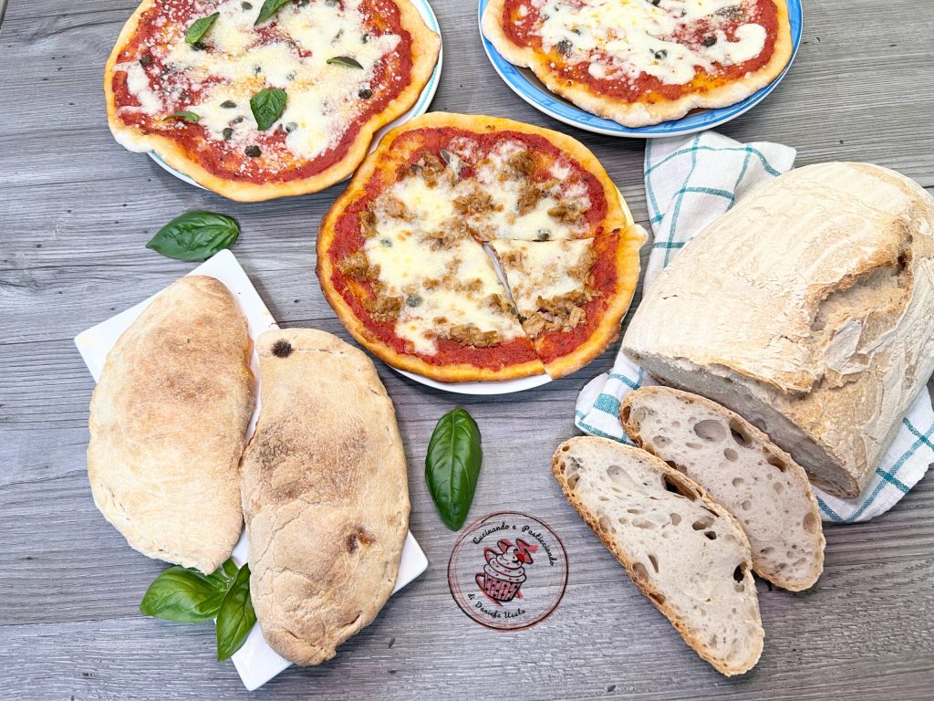 Today I prepared a very versatile dough, perfect for bread, pizza, and even calzones with long fermentation sourdough.