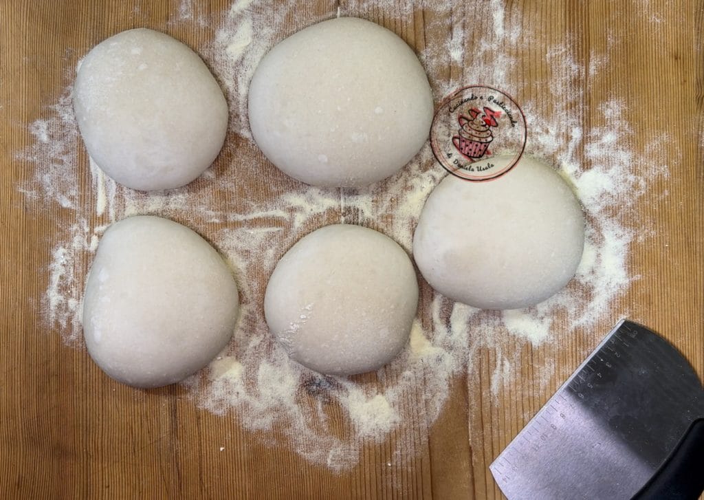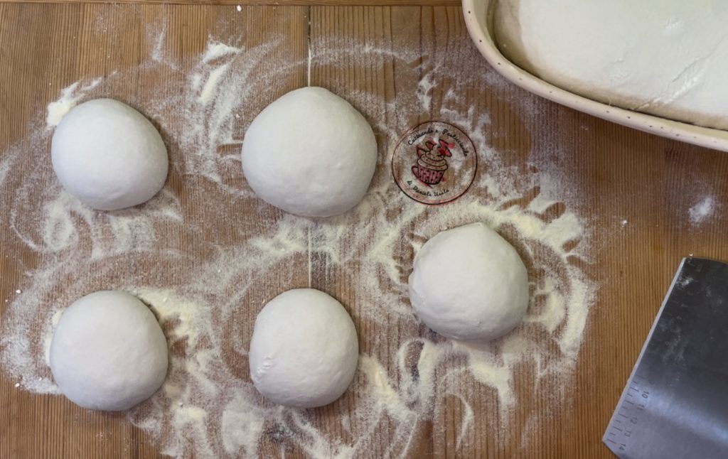 • I shaped a loaf for my bread and 5 balls: 3 for round pizzas and 2 for calzones that I will cook in the air fryer.