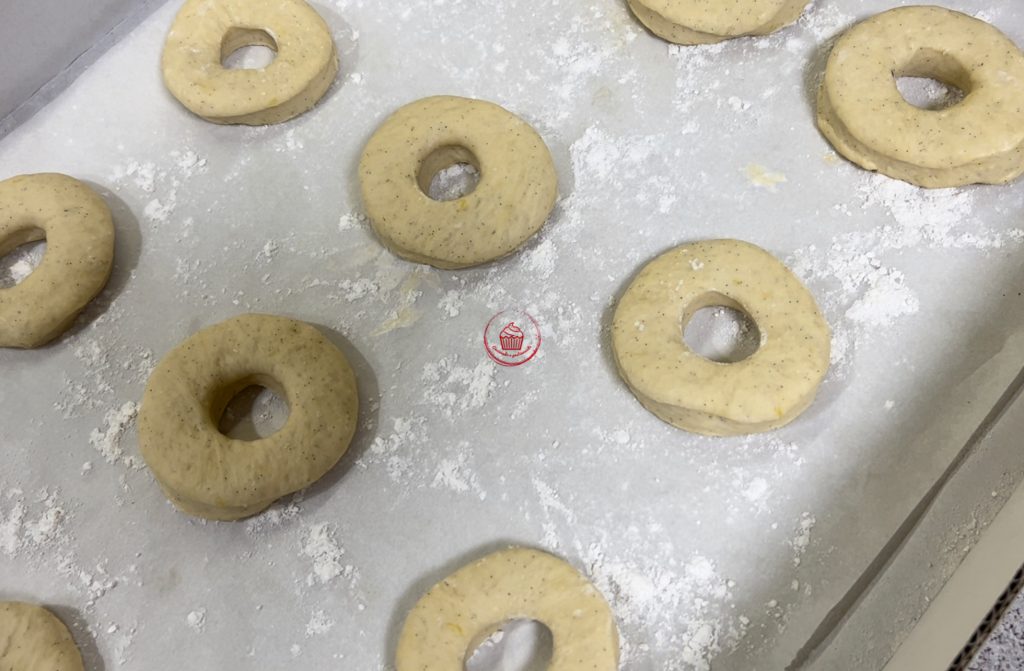• With the donut mold I cut out the donuts which I left to rise for about an hour, they should double in volume.