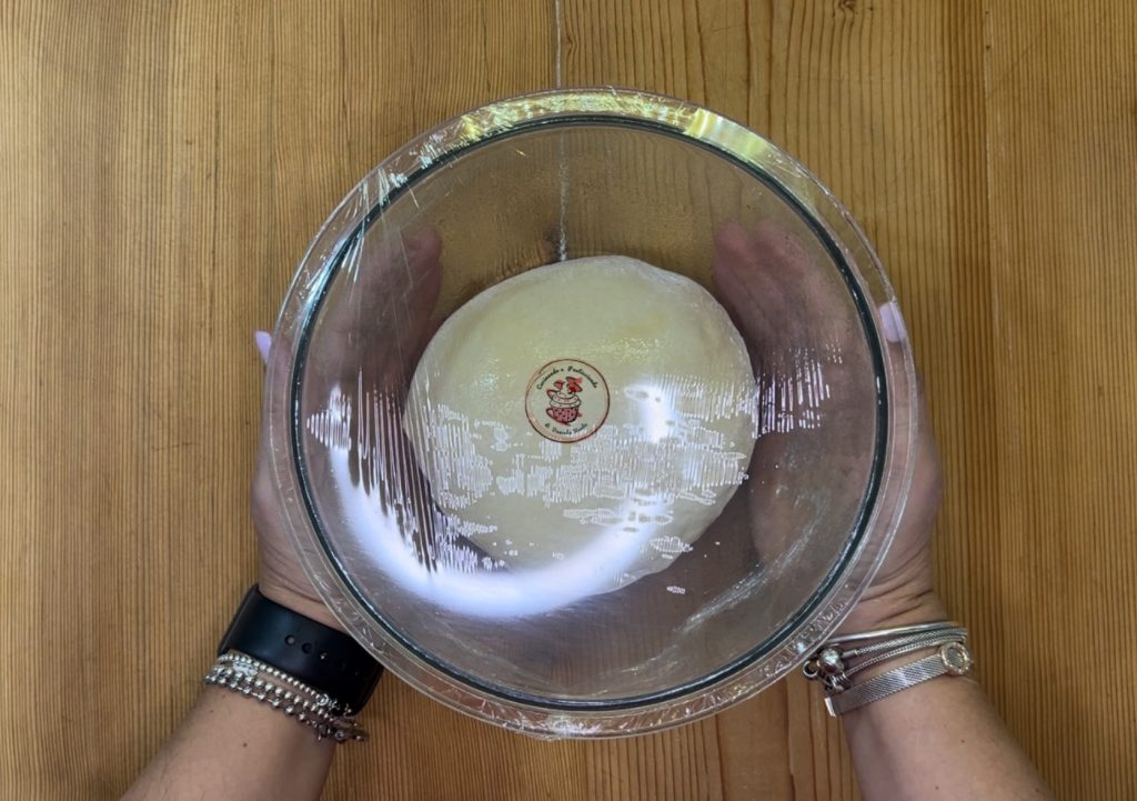 Transfer to a counter and form a ball. Place it in a greased bowl and cover with plastic wrap.