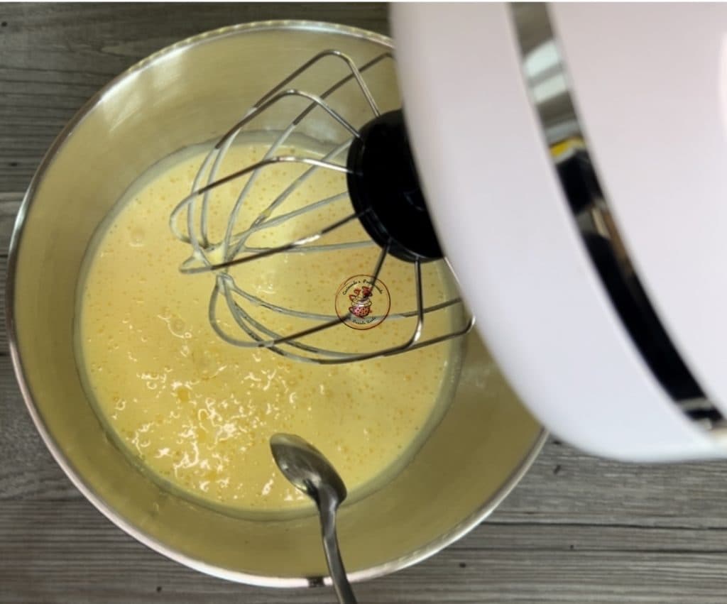 • Beat the eggs with the sugar in the stand mixer for about 10 minutes.