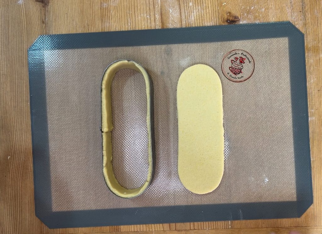With the ring, form the base of the tart and place it on the baking mat.