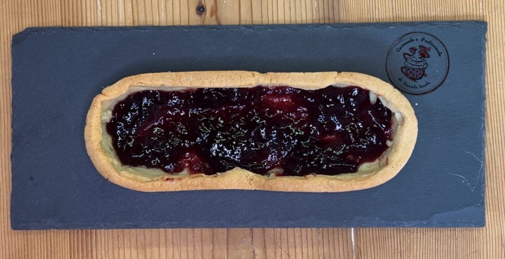 Spread the jam on the cooled tart base.