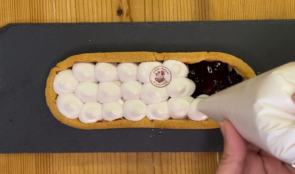 Transfer the ricotta cream into a piping bag and decorate the tart with small tufts.
