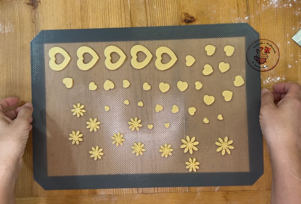 With the leftover pastry, prepare small flowers and hearts, and bake at 350°F for about 10 minutes.