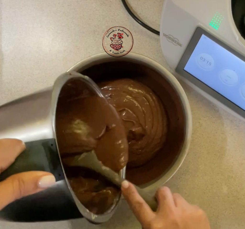 • Butter a 9.5-inch pan and dust it with unsweetened cocoa. Pour in the batter and bake for 40 minutes at 356°F.