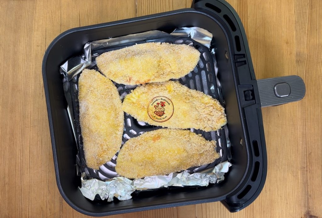 Then cook them for 10 minutes at 375°F in the air fryer, turning them halfway through. Before cooking, spray a little olive oil on top.