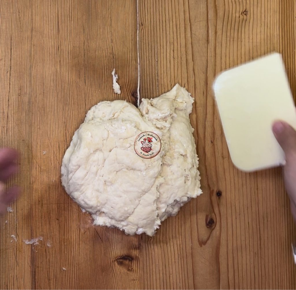 Transfer the mixture to the work surface and compact it while letting it cool.