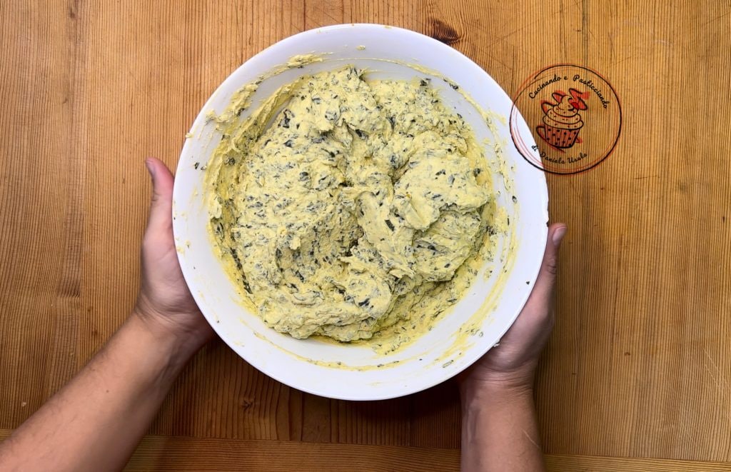 Let’s prepare the filling so it flavors well. Boil the chard, chop finely and set aside. In a bowl, mix the ricotta, yolks, nutmeg, and saffron.
