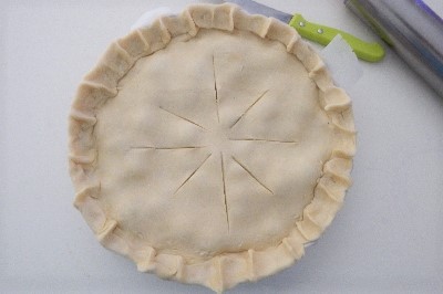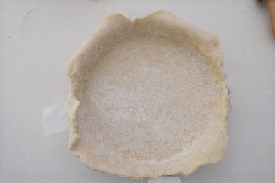 Butter and flour the 9-inch diameter mold. Lay the first disc on the bottom of the pie dish and along the edges