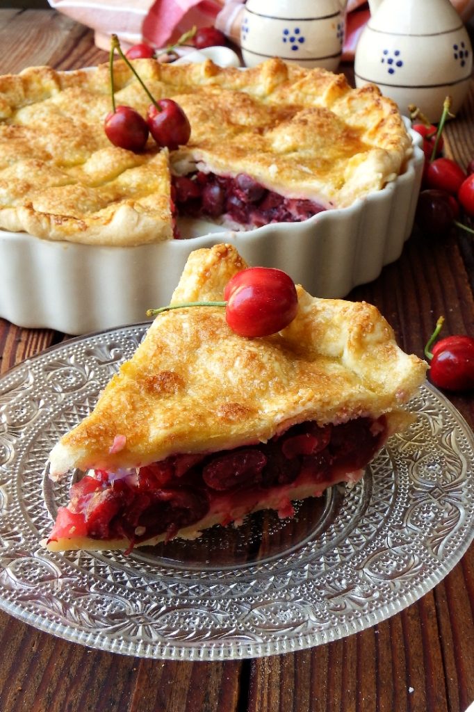The cherry pie is an American cherry pie, consisting of two layers of crisp and crunchy shortcrust pastry, filled with an incredibly delicious filling enriched with lots of cherries.
