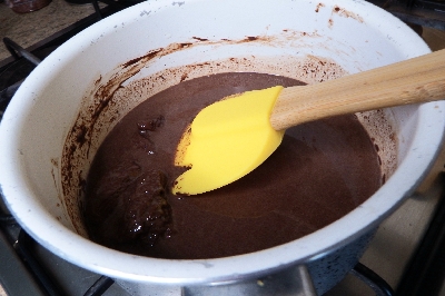 At this point, add the chopped dark chocolate and continue to cook over low heat, stirring with the spatula. When the chocolate is completely melted, pour it into the bowl, add the hazelnut crumbs, stir and let cool.