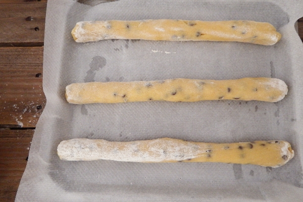 Remove from the oven and, while still warm, cut the loaves diagonally to get the typical cantucci shape. Place them on the baking sheet with the cut side up and bake at 300°F for 5 minutes. Remove from the oven and let them cool completely before serving! Enjoy your meal!