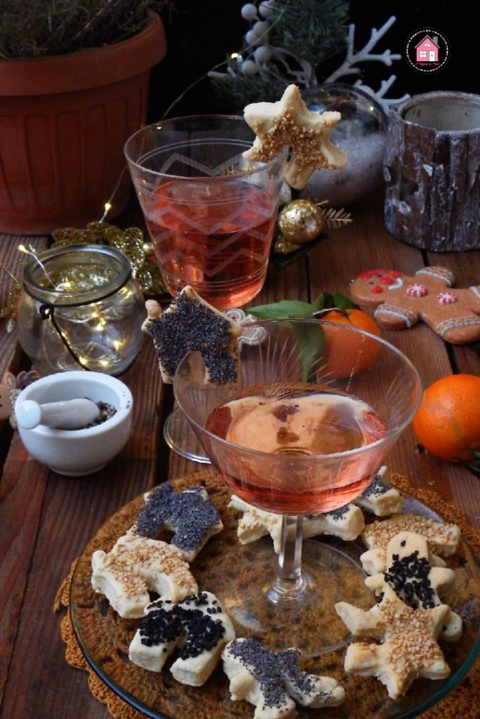 Christmas appetizer cookies to hang on the glass are a very original idea to serve our appetizers with a creative touch. We often see Christmas cookies hanging on a steaming cup of chocolate, and I thought, why not adapt this idea for the aperitif? My family loved them very much, they really add that something extra to our glasses, making them irresistible!