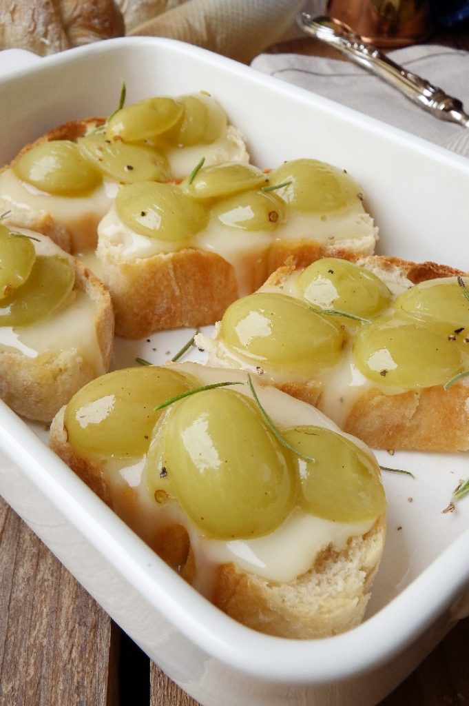 The crostini with grapes and Taleggio are an appetizer with an autumnal flavor, very quick to prepare, taking only a few minutes, and with a truly excellent taste, made possible by the pairing of grapes and Taleggio, two ingredients that together create a truly unique explosion of flavors.