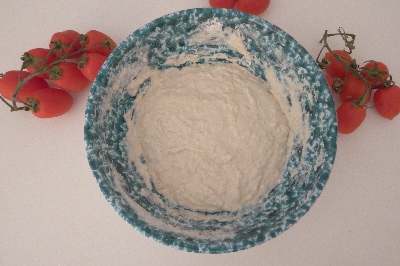 Cover the bowl with cling film and let it rise in the turned-off oven for about 2 hours, until it doubles in volume