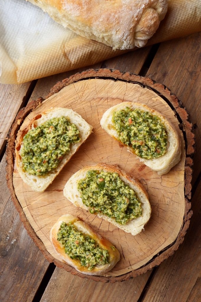 Divide the anchovy in half and remove the bone, wash it thoroughly under cold running water and remove all the salt. Dry with kitchen paper and cut into pieces.