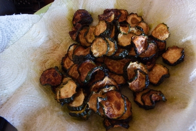Heat a couple of inches of peanut oil in the pan, when it reaches temperature, deep-fry the zucchini until they are golden and crispy. Remove with a slotted spoon and place them on a plate lined with paper towels