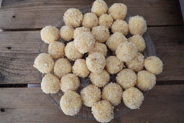 Form balls and roll each in the breadcrumbs