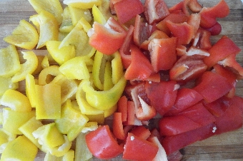 Wash the peppers under running water, pat dry with a paper towel, remove the stalk, seeds, and white filaments. Cut into strips.