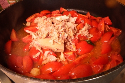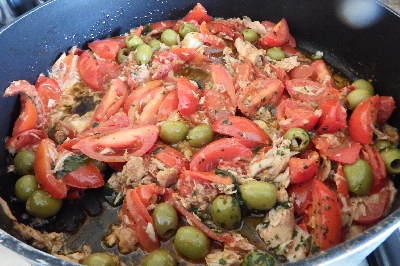 Add the tuna fillets and mix them into the sauce with a wooden spoon
