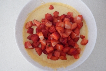 • Finally, add the strawberries cut into small pieces and mix the batter with a spatula