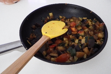 Wash and trim the vegetables, then cut them all into cubes. Heat a drizzle of oil in a pan with the garlic clove, add the vegetables and cook for about 10 minutes, stirring frequently, season with salt and basil leaves. Turn off the heat and let cool