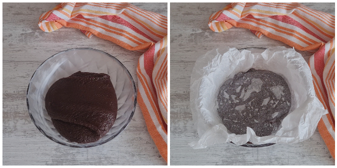 Remove from the heat and pour the mixture into a bowl lightly greased with a little butter. Cover the mixture with a sheet of parchment paper and let it cool, then place it in the refrigerator for about 2 hours so the mixture firms up and can be handled with your hands.
