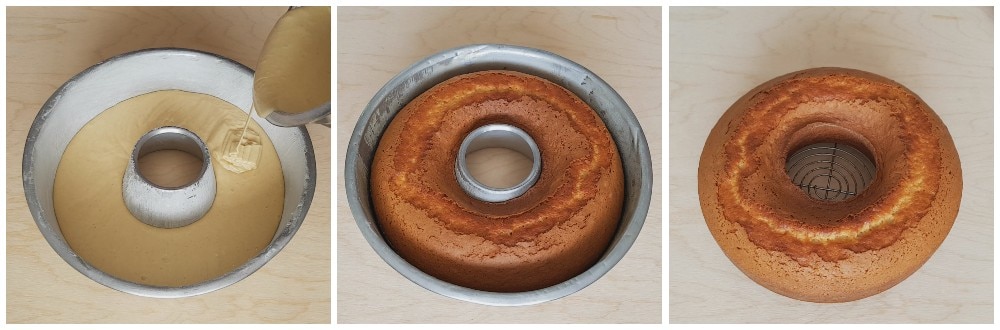 Pour the mixture into a greased and floured bundt cake pan. My pan has a diameter of 24 cm (9.4 inches), but a slightly smaller one will work too.