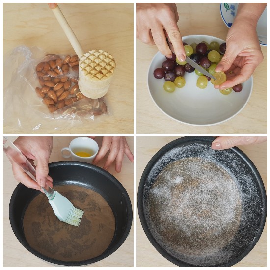 • Before serving your grape and almond cake, sprinkle it with powdered sugar.