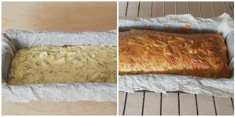 Pour the batter into a loaf pan lined with parchment paper (I used a pan measuring 9.8 x 4.5 inches).