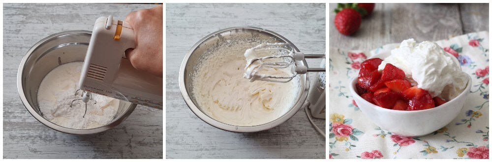 Strawberries with cream is a delightful dessert to prepare in spring, although it is now easy to find strawberries all year round (but seasonal fruit is always the best). Great to serve at the end of a meal or as a snack, they are always loved by everyone and kids go crazy for them. In my fruit salad with whipped cream, I added limoncello liqueur, but if there are children, it is best to avoid it, your dessert will still be delicious. You can dress the strawberries with sugar and lemon juice, but if you use the juice of an orange instead of the lemon, in my opinion, they taste even better.