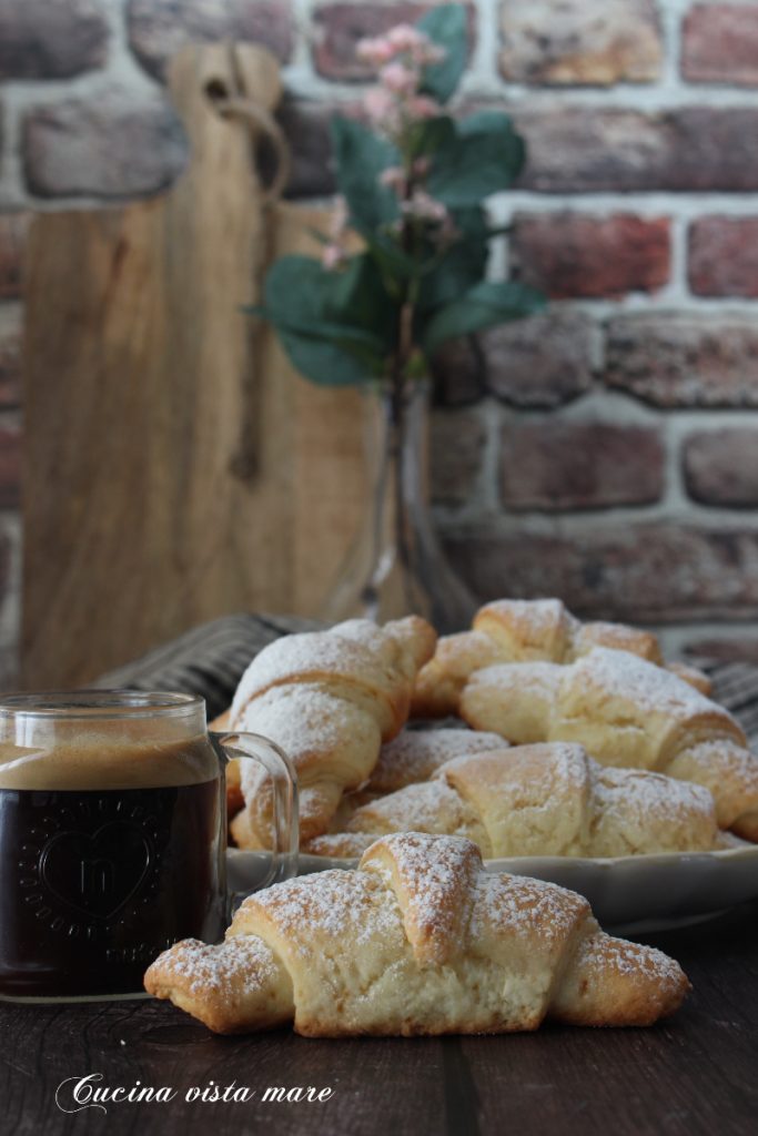 The croissants keep for a couple of days at room temperature in an airtight container. They can be frozen. They can be filled either before baking (by adding a teaspoon of spreadable cream or jam) or after baking by simply cutting them in half.