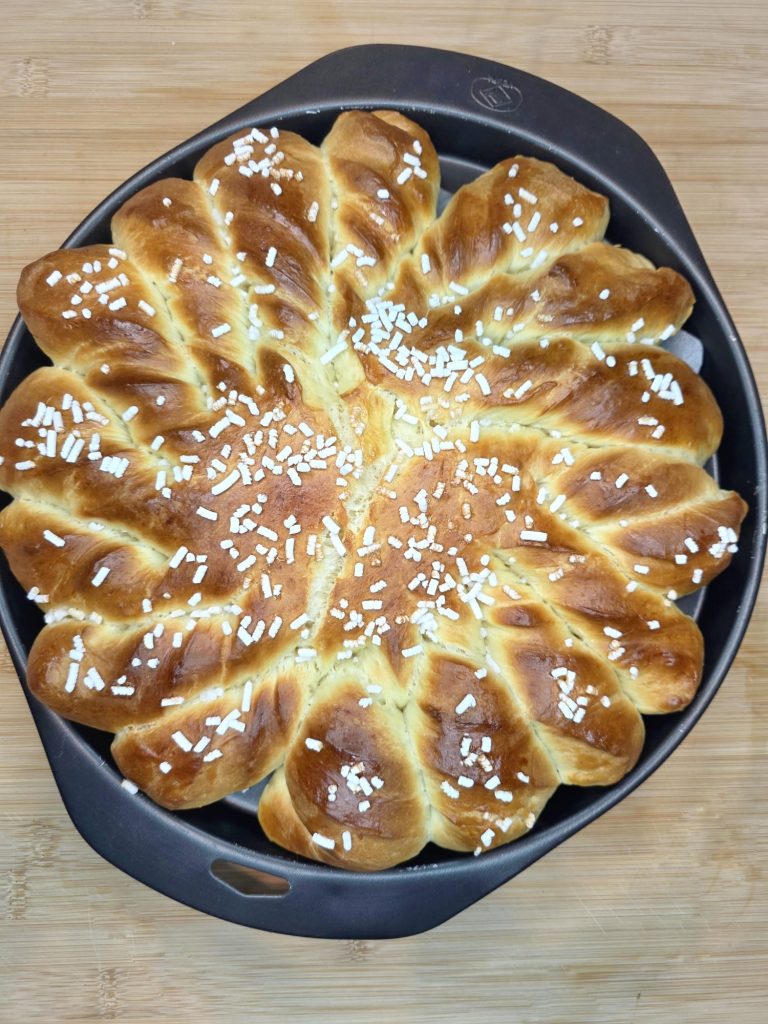 This cake hides a surprise among its ‘petals’ that will make snack time fun for both adults and children. Tradition would have it that a coin is inserted inside the brioche dough, making the year of the lucky finder rich and prosperous. Honestly, I preferred to avoid it, but if you want to make snack time more playful, you could insert a small almond instead of the coin.