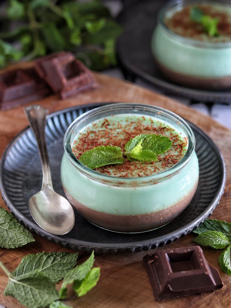 The mint and chocolate panna cotta is a dessert where the goodness of chocolate and the freshness of mint blend into one truly delightful taste.