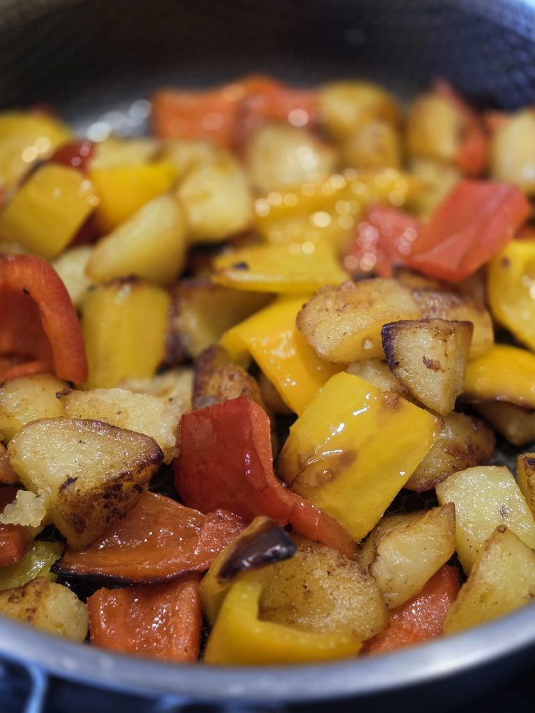 Peppers and Potatoes are a vibrant summer side dish with a rich flavor and intoxicating aroma.