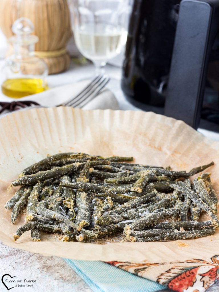 Air fryer baked green beans are a simple and tasty side dish, perfect to accompany any type of main course, whether meat or fish. To boil the green beans, you can follow these instructions or if you want, you can boil them faster by trying to cook them in a pressure cooker. The cooking time of baked green beans cooked in an air fryer may vary depending on the type of air fryer you use. This is the AIR FRYER I use. I suggest checking out 50 AIR FRYER RECIPES, all recipes with the air fryer, SALADS WITH GREEN BEANS, and other GREEN BEAN RECIPES. I’m sure you’ll find more recipes to try. Now let’s see how to make air-fried baked green beans, and if you try them, let me know. Barbara