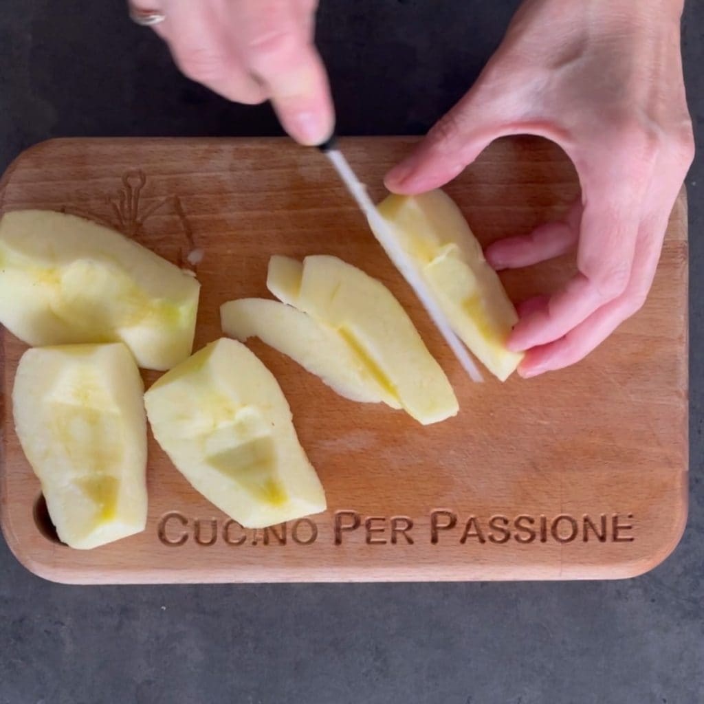 Let’s start preparing the Apple Plumcake, peel the apple, cut it into 4 parts and remove the core,