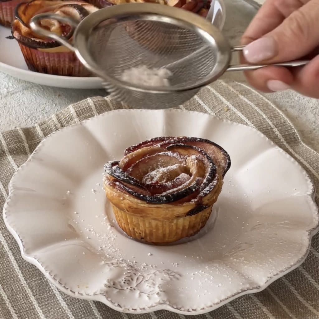 Apple roses and puff pastry, a dessert with puff pastry that years ago took the web by storm, is now a recipe that everyone must try at least once. The apple and puff pastry roses are simple to make, tasty, and especially beautiful to behold, perfect as a dessert, for a snack, or breakfast. If you serve these puff pastry apple roses to your guests, they will be amazed by the beauty of this single-portion dessert, in addition to being very good, they can be made with a few simple and quick steps. If you love this kind of dessert, also try the APPLE PIE WITH PUFF PASTRY, which unlike the single-portion apple roses, will need to be sliced. I also recommend trying the savory version of PUFF PASTRY AND POTATO ROSES for a tasty and refined appetizer. Now let’s see how to make the apple and puff pastry roses, and if you try them, let me know. Barbara